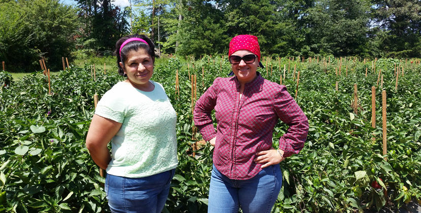 Martha Calderon and Esmerelda Sandoval (sisters-in-law) both began working in the fields as seasonal farmworkers. They eventually worked up to managing contract labor for farmers while still in the fields. Now, the sisters-in-law work for themselves in western North Carolina alongside their husbands and children on their own land.